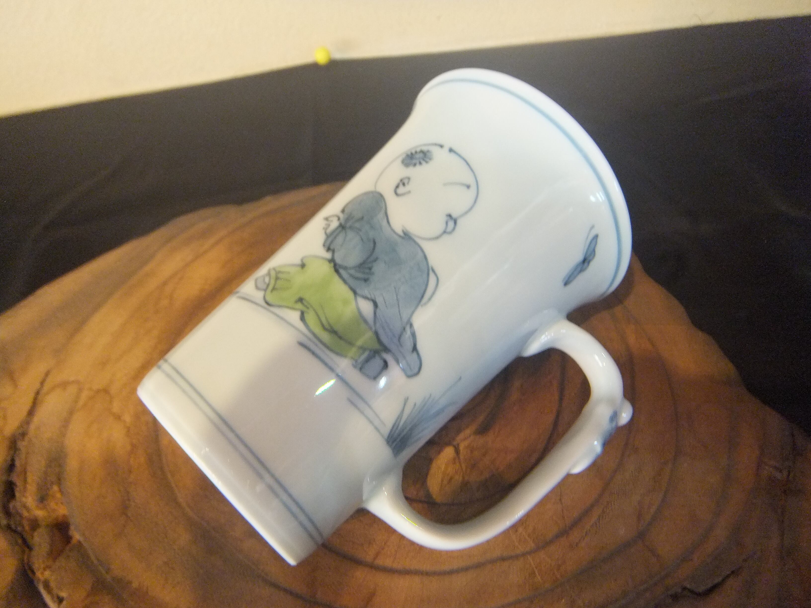 染付による唐子絵が柔らかいタッチで描かれたマグカップです。