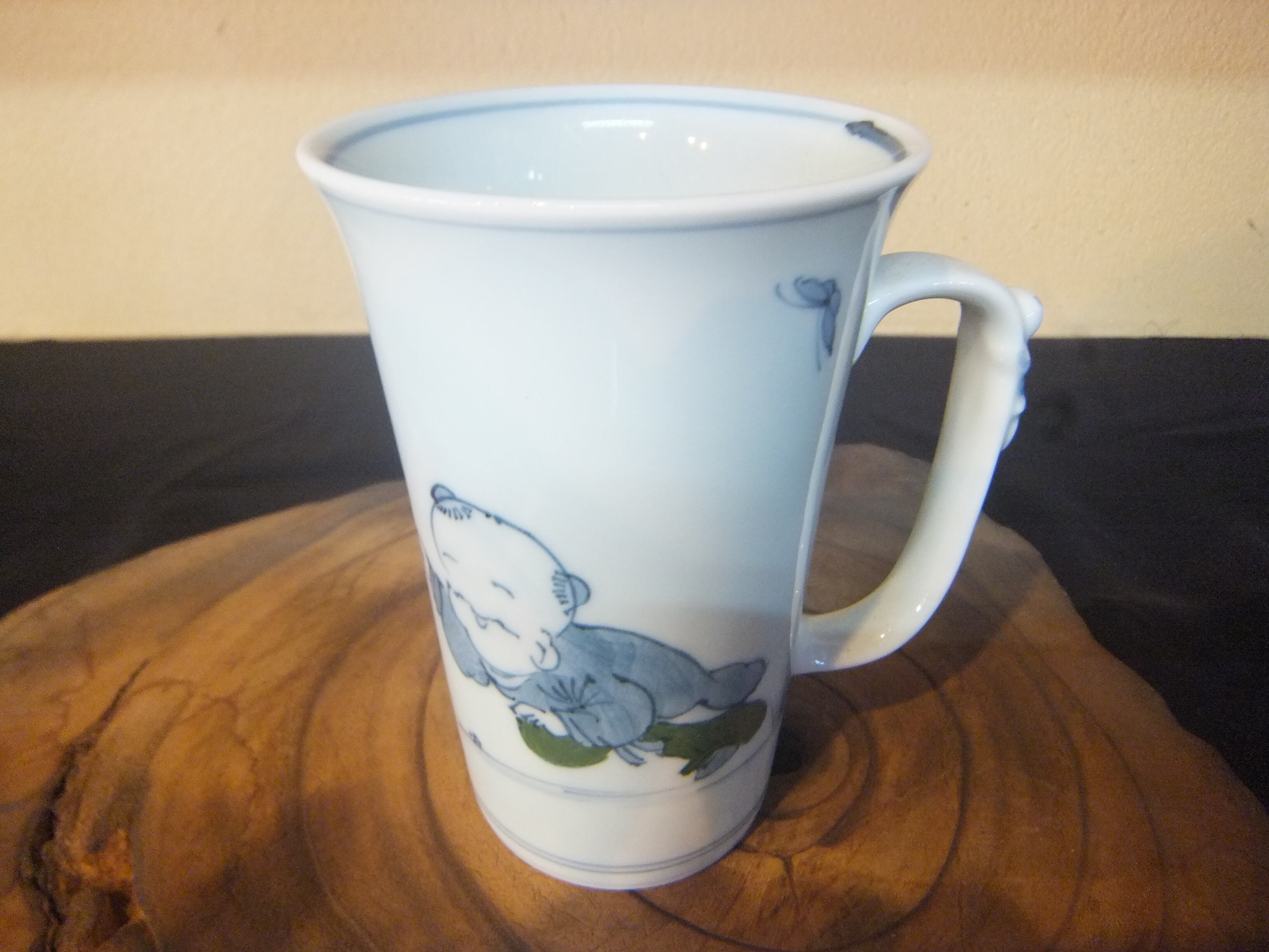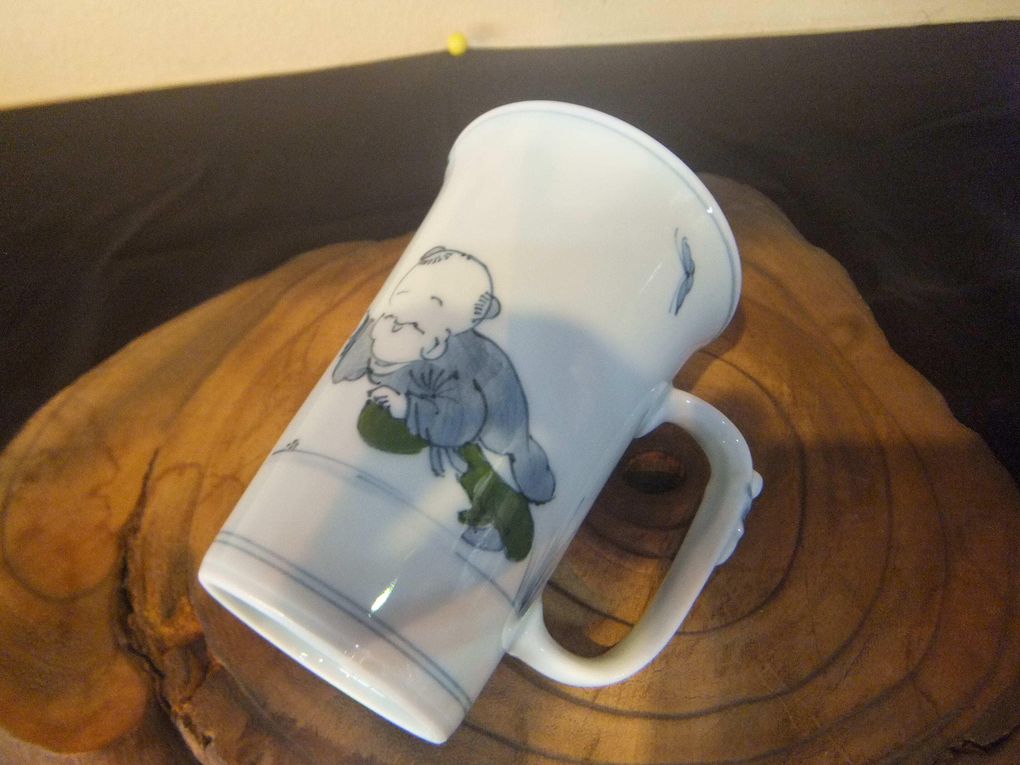 染付による唐子絵が柔らかいタッチで描かれたマグカップです。
