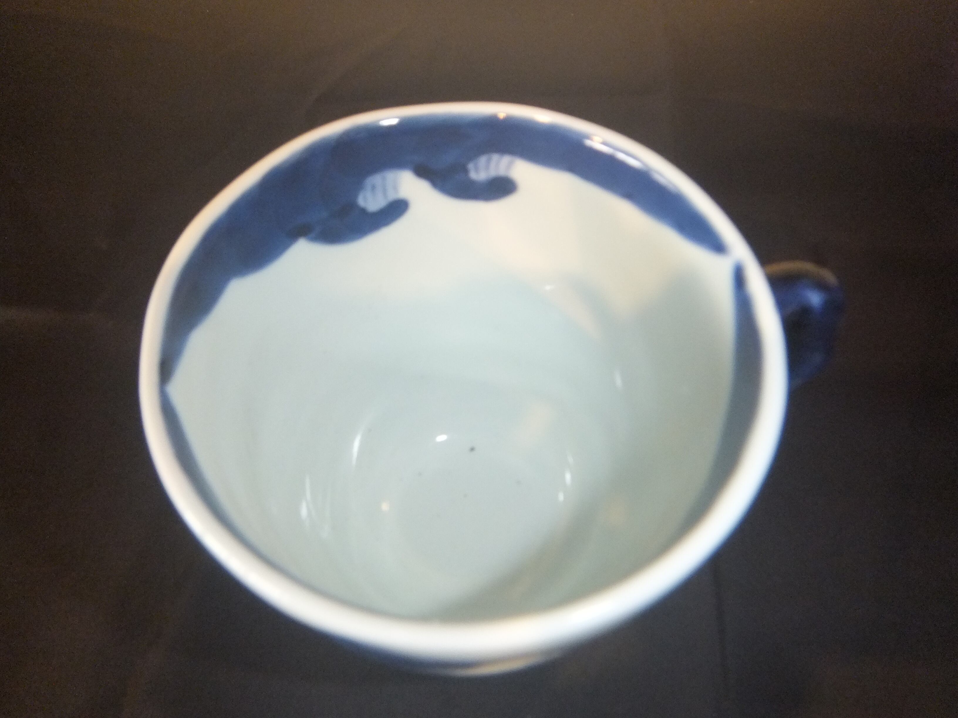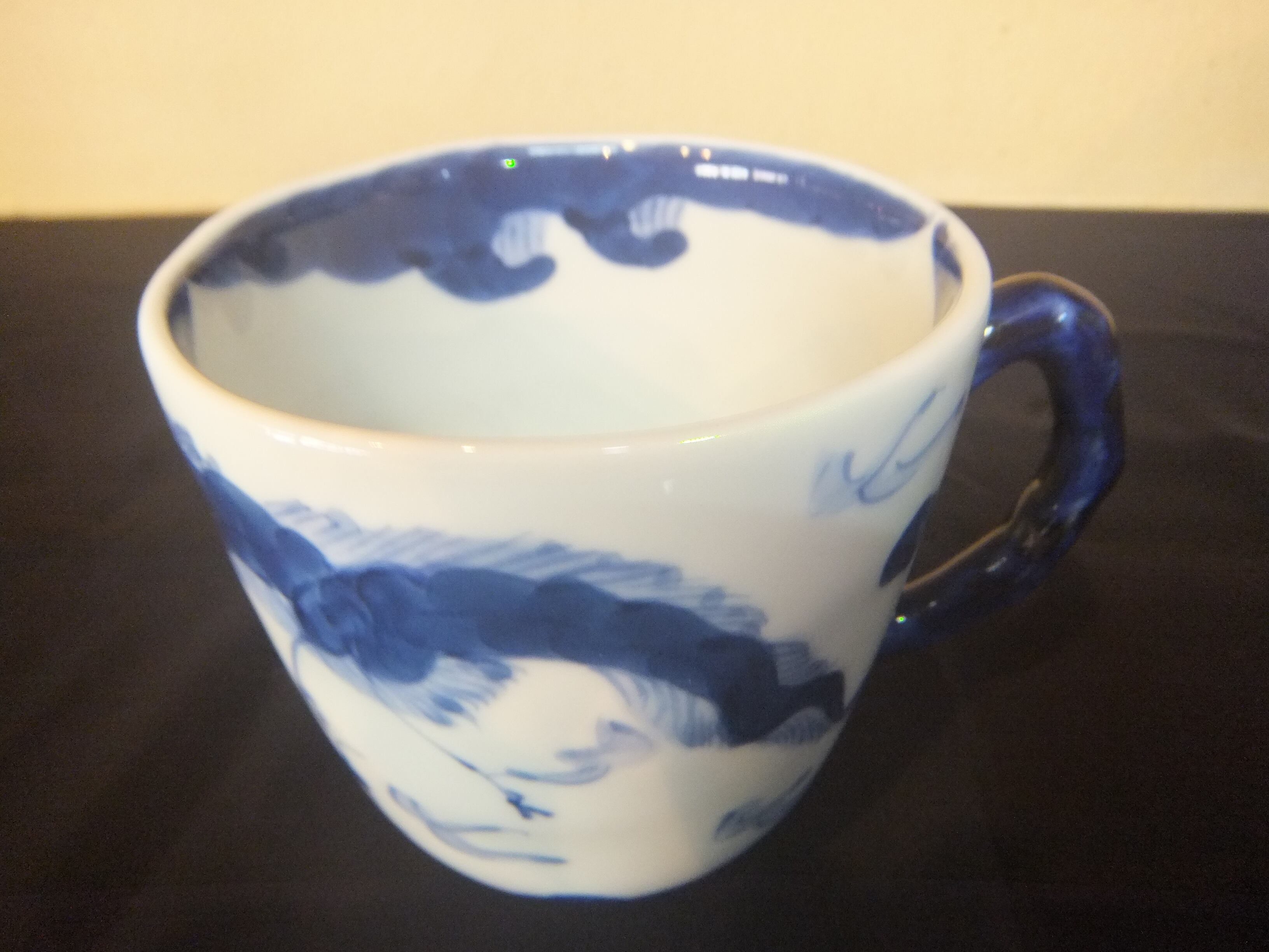 染付の青による龍雲が聡明に描かれたマグカップです。