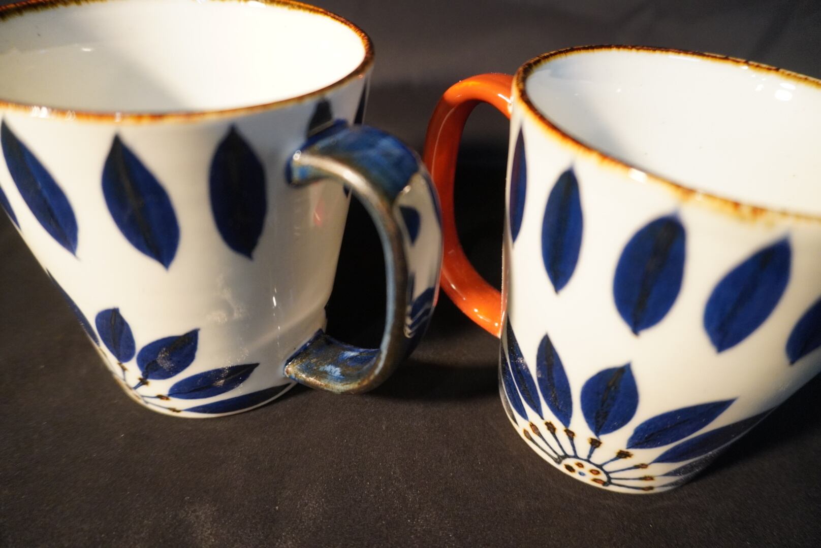 取っ手が赤と青のセット販売です。容量も大満足頂けるビッグマグカップです。