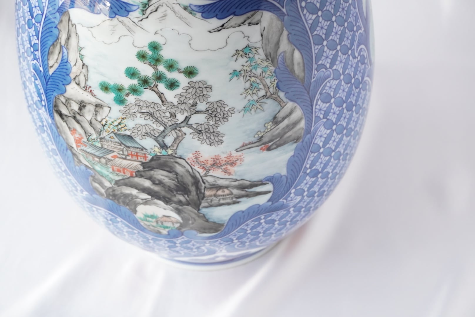 細部までこだわり繊細な地紋山水絵が